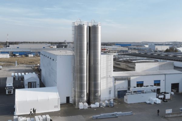 Two silos, 25 m high and 4.2 m in diameter, with two chambers of 148 m³ each, hold a total of 360 tonnes of plastic. The entire process is supported by the SAP system, which allows online tracking of goods.