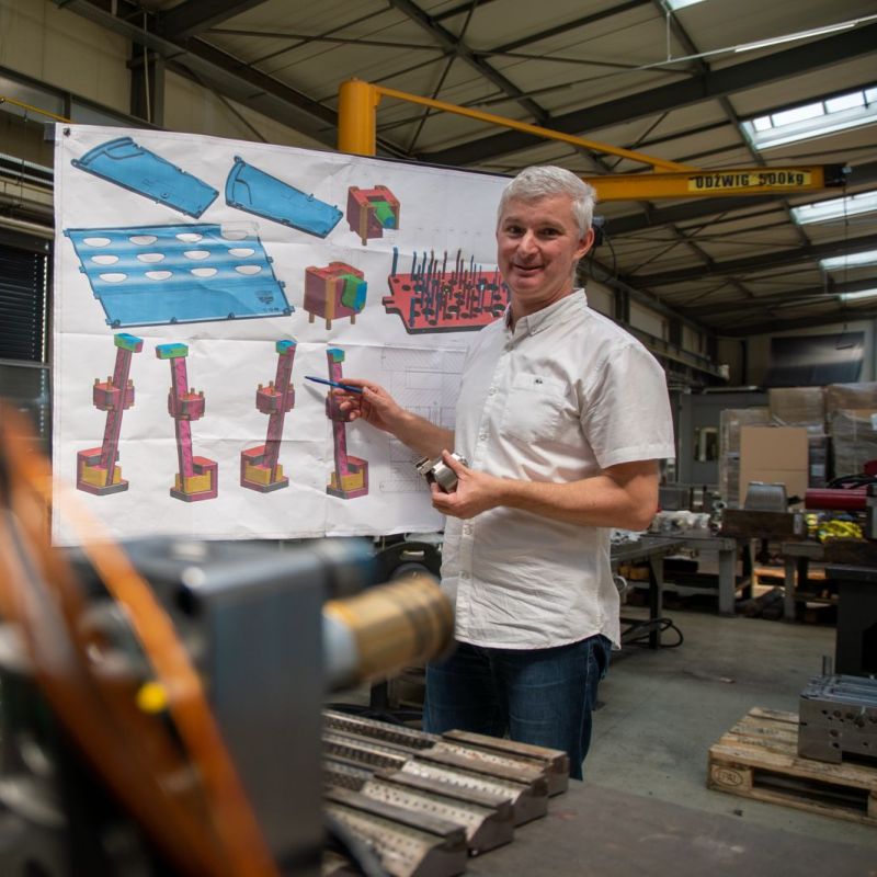 Zapewniamy klientom kompleksową obsługę: projektowanie produktów (DFM), prototypowanie 3D, produkcję form wtryskowych do 20 ton i seryjną produkcję detali na 86 nowoczesnych wtryskarkach (50–1300 ton).